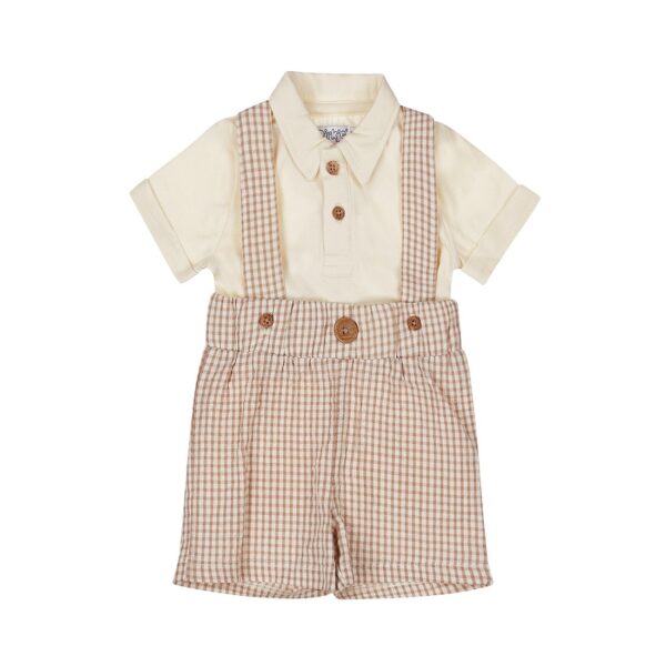 Completo neonato Dirkje composto da salopette a quadri e maglietta polo in morbido cotone. #Target Infant
